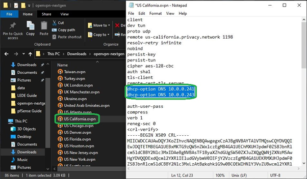 Step 1. Edit the OpenVPN configuration file to use include PIA DNS servers.