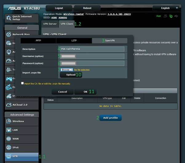 Step 2. Upload the OpenVPN configuration file for the router to utilize.